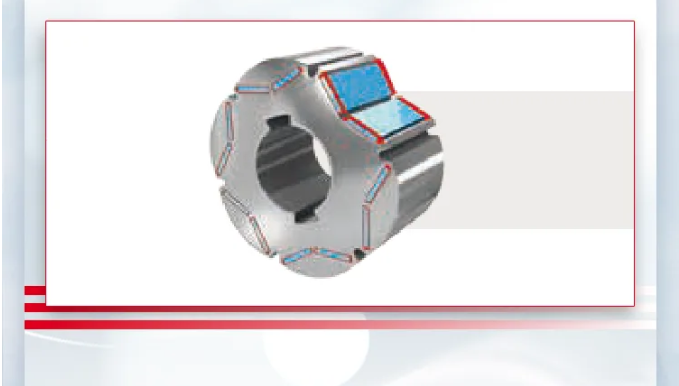 针对新能源电机驱动的创新设计,磁体深嵌转子内部,顶部涂胶保证填充磁体与转子间的腔体,适当的流动性确保磁体插槽间的