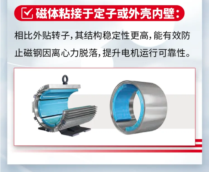 为了电机的可靠运行和使用寿命,磁钢粘接工艺成为关键技术。通过固定磁钢,提升电机可靠性,实现更高功率。