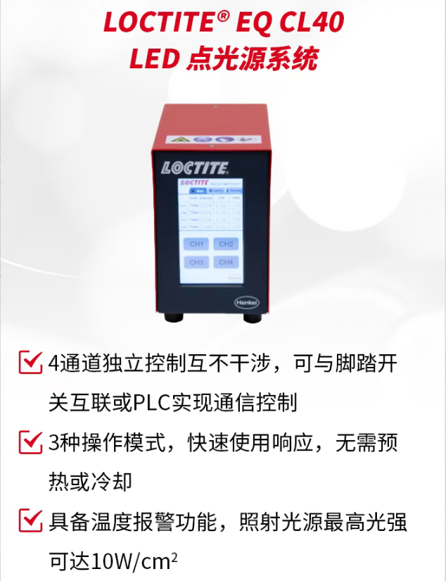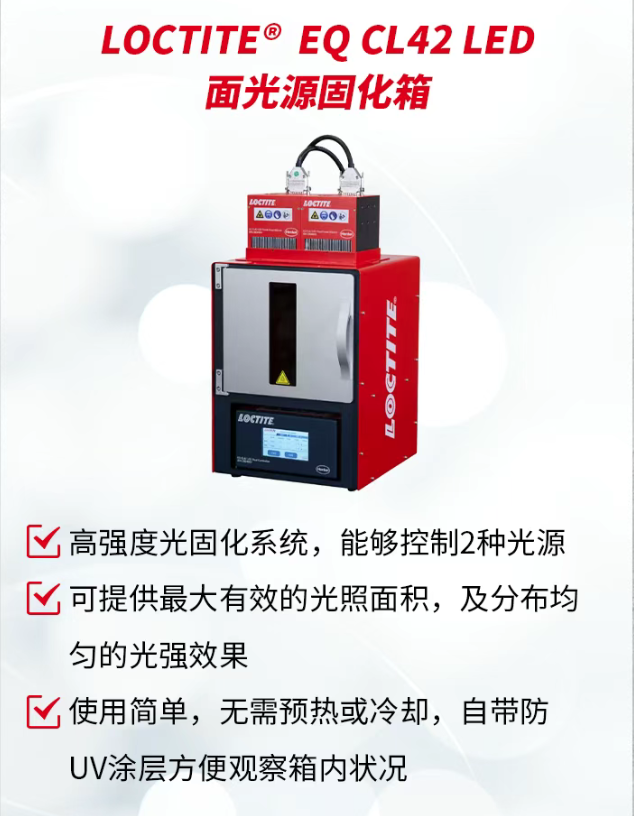 光源系统是实现UV胶粘接的必要条件,其性能直接决定了粘接质量的可靠性与一致性。光源波长、强度及均匀性不仅胶水的固化速度与程度,更直接影响产品的粘接强度与长期稳定性。汉高乐泰提供多种光源设备,确保不同结构、不同尺寸的粘接面积都能获得均匀可靠的固化效果。