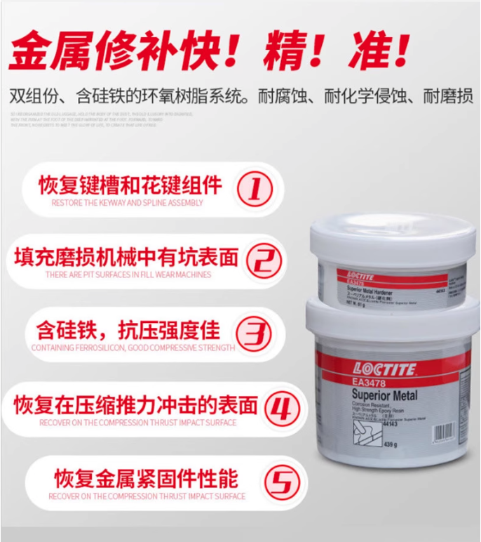 乐泰 EA3478 含硅铁环氧金属修补剂 修复键槽轴承箱耐磨损