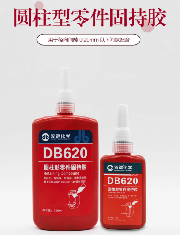 双键DB620园柱型零件固持胶绿色耐高温用于径向间隙 0.20mm 以下间隙配合,如气门套管、注塑机芯套、阀套、键槽等。
