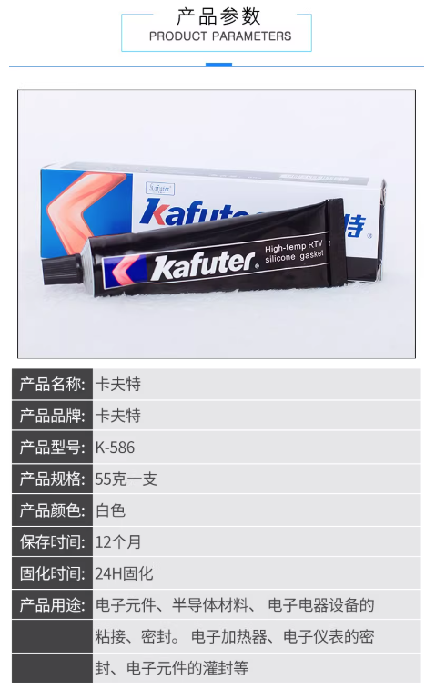 产品特性:586免垫片密封胶以耐高温性能为优势,可在1100℃高温环境下保持密封稳定性。其硫化硅酮树脂成分兼具柔韧性与抗老化能力,固化后形成耐化学腐蚀的弹性胶层,抵御汽车排气系统常见的震动及热胀冷缩效应。