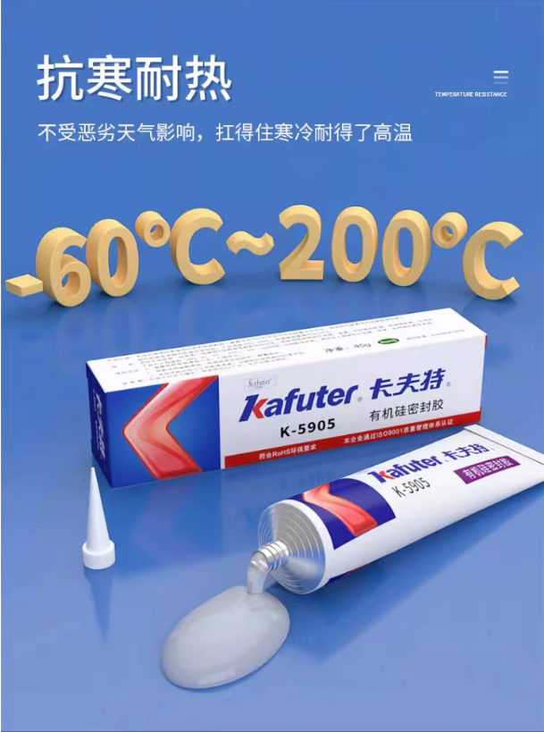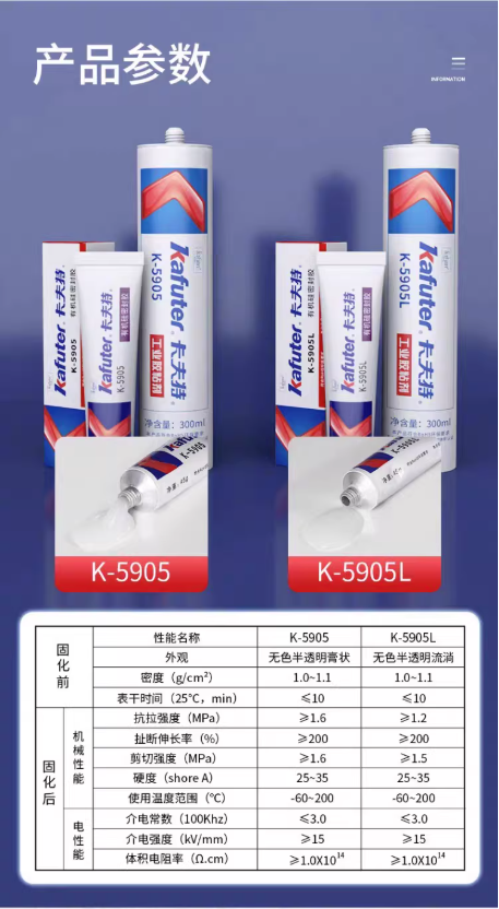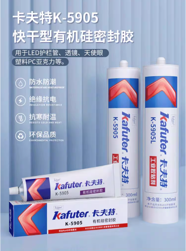 卡大特5905胶水是一种快干型中性有机硅密封胶,通过接触空气中的水分固化,固化后形成弹性密封层。12其主要作用基于优异的综合性能,包括良好的电绝缘性、耐高低温性(-50℃至250℃)、防水密封、防潮抗震以及对多种材料的强粘接性。12在工业应用中,该胶水用于多个领域: