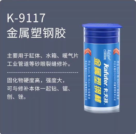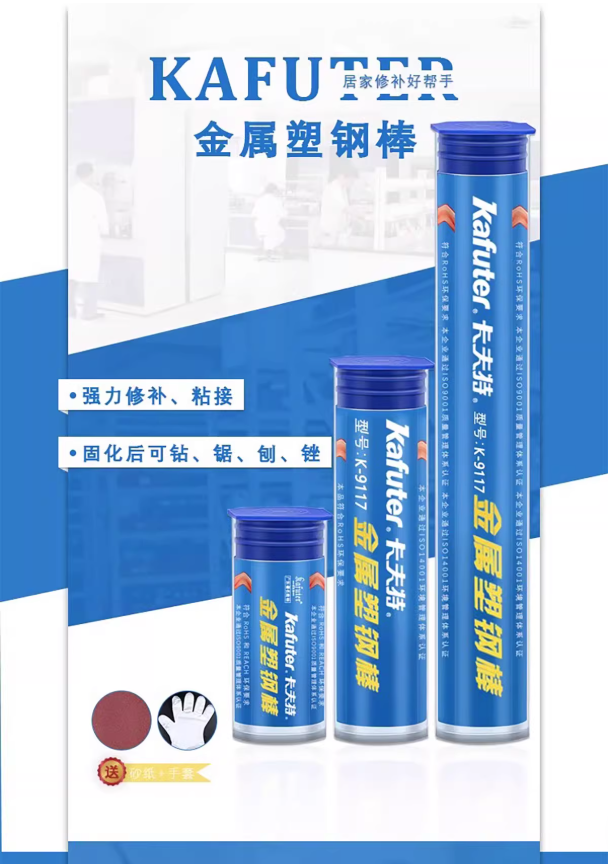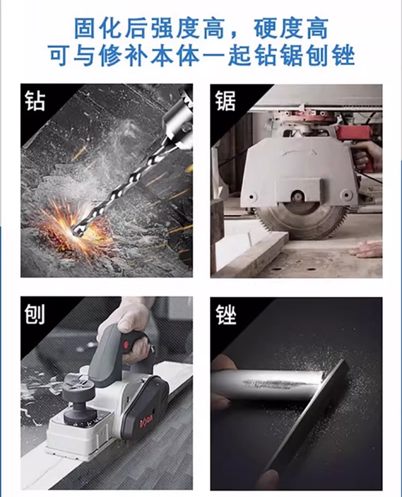 工业应用:金属、木材、塑料、水泥制品的缺陷修复;铝框、门框、楼梯保护板的粘接与修补;广告招牌制作、门牌固定;化工、煤气、供水管道的堵漏;云石、大理石的拼接与修补:机械零件、金属材料的互粘、固定与打磨:容器、管道漏孔、裂纹、断裂的填充修复;模型与样板的快制作。