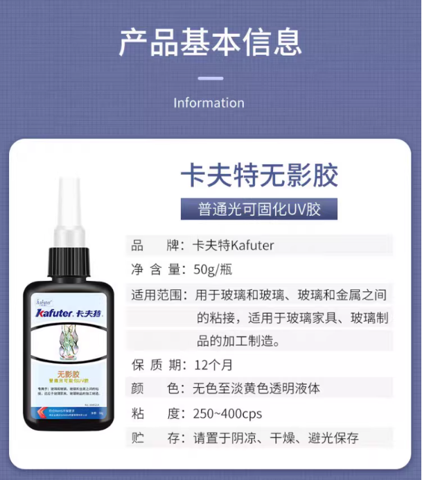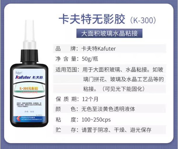 卡大特UV胶306是一种单组份紫外光及可见光固化的改性内烯酸酯胶粘剂,具有粘度低的特点,便于施工时排除气泡并适用于大面积粘接。1该胶粘剂主要用于玻璃与玻璃、玻璃与金属之间的粘接, 例如在玻璃家具、工艺品或电子线路板等产品的制造中,固化速度快且粘接强度高,同时具备良好的耐黄变性。