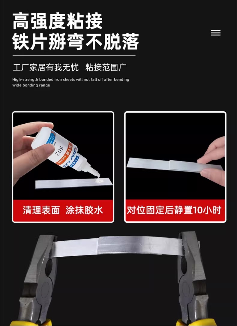 多功能粘接:适用于粘接橡胶、金属、塑料、玻璃、陶瓷、木材、皮革等多种材料,用于家庭维修、工业生产、商业应用等领域。