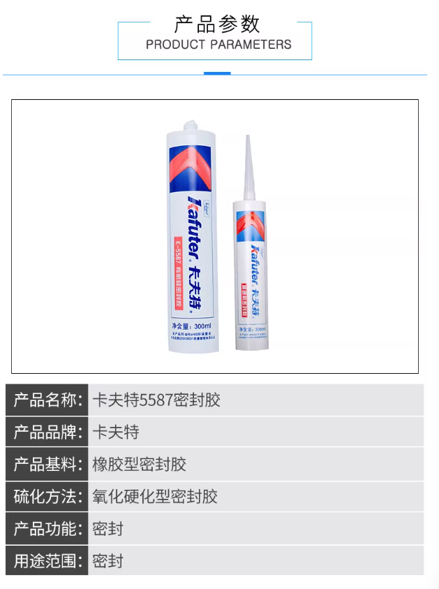 通用型粘接密封:通用型粘接密封RTV硅酮胶,有蓝、白、灰、红、黑五种颜色可选,填充间隙达6mm,工作温度范围广(-60-280°C),适用于各种内燃机、发动机、油底壳、水泵、车桥、法兰盘、盖板、阀盖等的密封及抗震