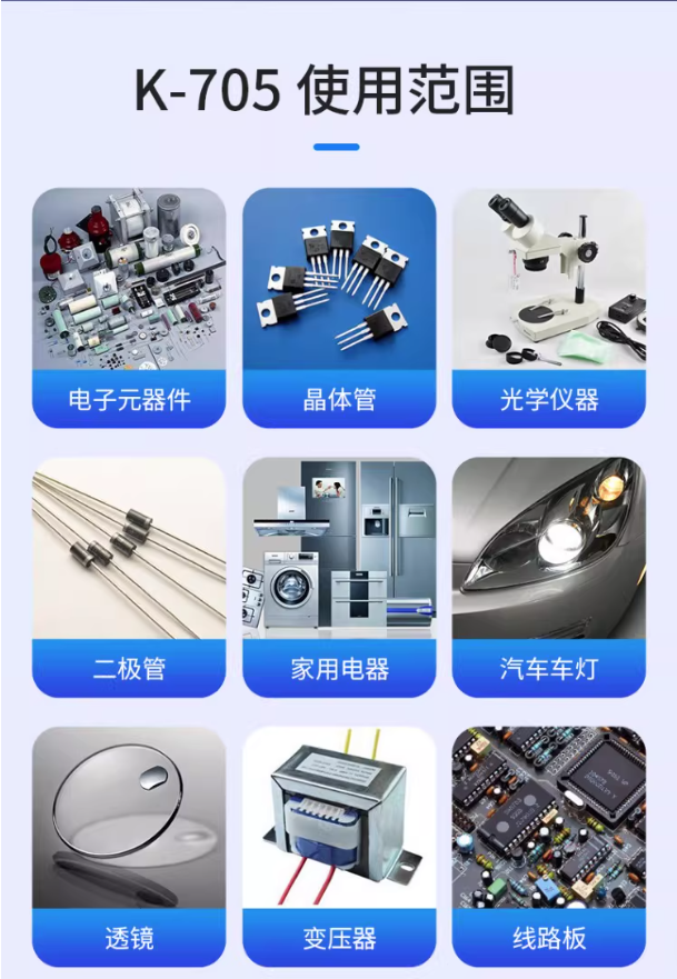 电子元器件灌封:广泛应用于电路板、半导体材料、电视机输出变压器、可控硅台面保护、晶体管和硅二极管的内涂料等,提供防潮、密封和抗震保护。