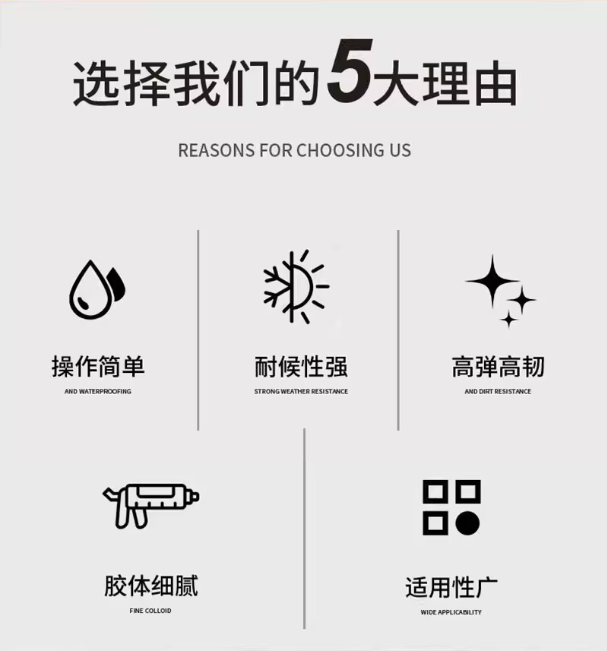 建筑防水防尘:适用于金属、玻璃、漆面等基材的接缝处理。