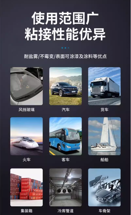 多基材兼容:可粘接玻璃、金属、漆面、木材、塑料等多种材料 。
