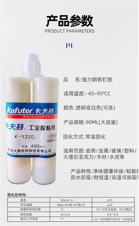 粘接:对多种金属(如45#钢)和塑料材料具有良好的粘接强度,剪切强度≥20 MPa(常温下)4。