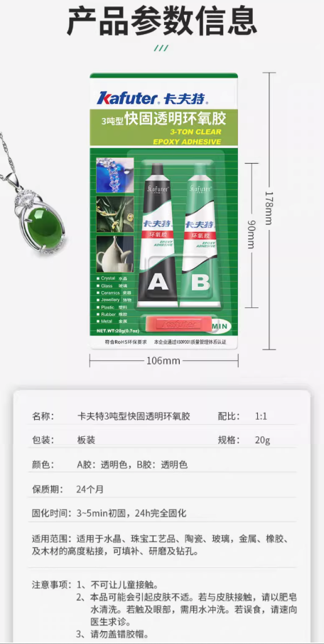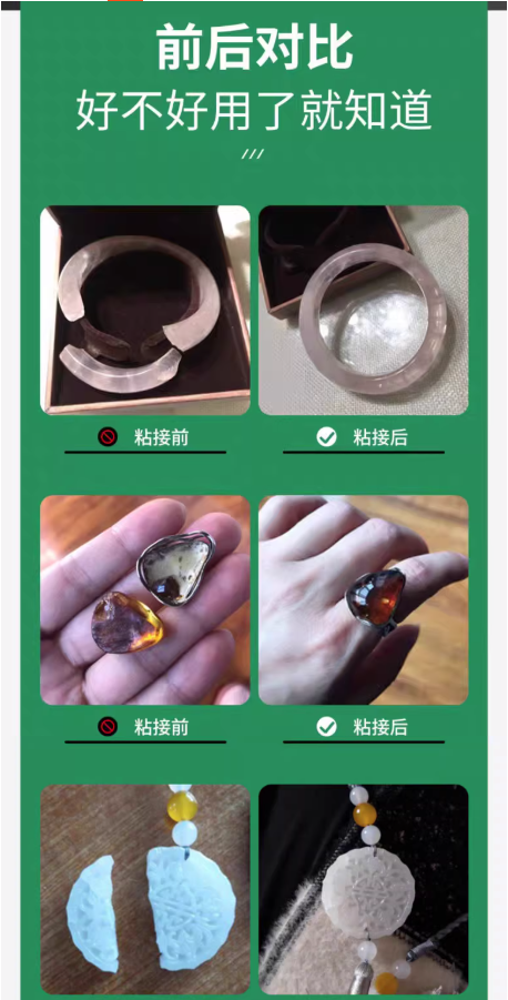 透明无色:固化后透明光亮,不影响外观,适合用于工艺品、水晶、玻璃等对美观有要求的场景。