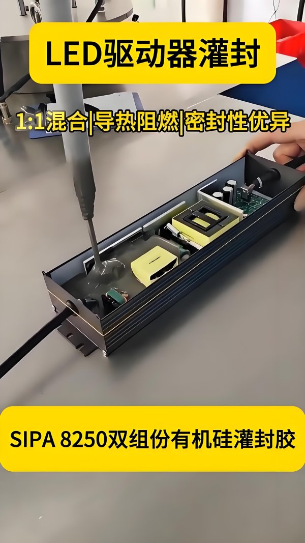 ELAPLUS SIPA8250双组分有机硅导热灌封胶,UL-94V0级阻燃;具有很好的流动性,操作时间可根据温度调整,室温可深层固化,适用各种散热耐温元件的灌封保护,符合欧盟ROHS指令以及REACH要求。应用领域:汽车电子、模块;LED 电源驱动模组、太阳能组件接线盒、电动车充电柱模块、锂电池组、电容组、磁感线囿、逆变电源。#led驱动器灌封 #电源灌封 #有机硅灌封胶 #电子灌封胶 #LED